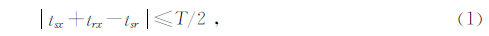 从以上定义可以明显地看出,菲涅尔体的计算是可逆的,也就是说交换震源和检波器的位置,菲涅尔体保持不变.第一菲涅尔体的边界由以下关系确定: