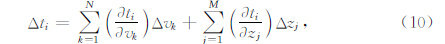 同时反演速度和界面时,Jacobi矩阵包含两部分内容:一是走时对速度的偏导数;二是走时对反射点深度的偏导数: