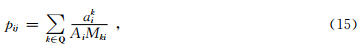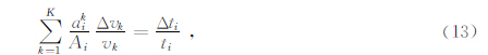 我们将模型离散为K个网格单元,第i条射线的走时为ti,对应的第一菲涅尔带的面积为Ai;第k个单元格的速度分布为vk,与第i条射线对应菲涅尔带重合部分的面积为aki,根据式(12),可得