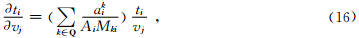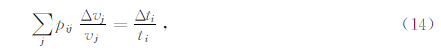 根据式(14-15)式可得到Jacobi矩阵元素中走时关于速度的偏导数为