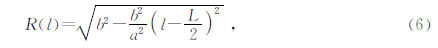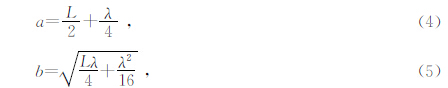 由式(1)可知,对于二维情形,均匀各向同性介质中的菲涅尔带为标准椭圆,其标准椭圆方程为