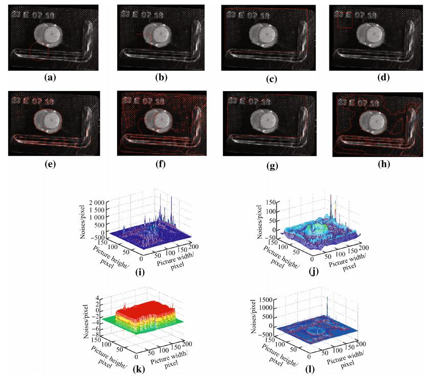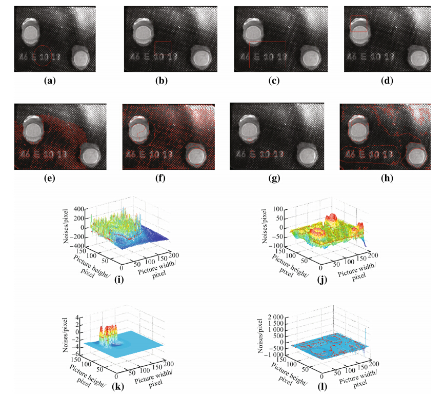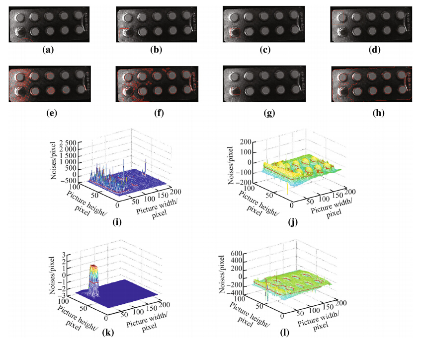 (iv) The initial contour is a rectangle with the proposed DRC method,and it is high efficiency and well effect. Figures3(h) and 3(l) show that the tablet contour,production date and other decorative parts can be well segmented. The final level set function demonstrates that the image contour is prominent.