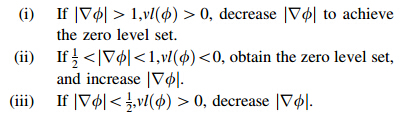 In order to obtain the zero level set,|∇ φ| is satified the following three cases: