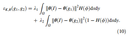 image intensity parameters,g1(x1,y1) and g2(x2,y2). According to the C-V method,the control minimized energy