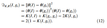 The ||θ(I)-θ(g)||2 fails to non-robustness,which is similar to the Euclidean distance vector of the data space. Therefore,the distance vector involves Gaussian kernel function as a flexible boundary,which is given as