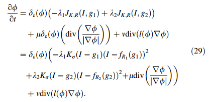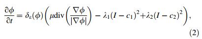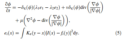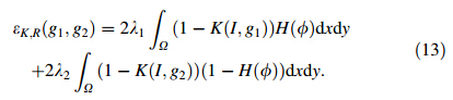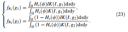 Assuming the boundary contourCtakes the representation of zero level set function (φ(x;y)),the regional parameter gi fg;i¼1;2 can be expressed as follows