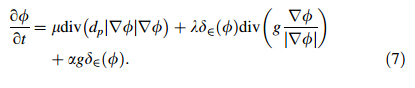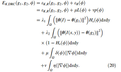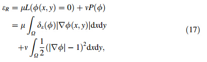 2.2 Other level set methodsThe region-scalable fitting (RSF) energy [19] and distance regularized level set evolution (DRLSE) [20] methods are introduced in this section.