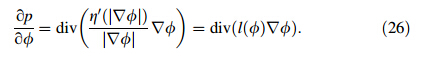 Therefore,vP(φ) can be rewritten as vp(φ) and satisfies the requirement vl(φ) < v,which is the diffusion rate for the potential function η(|∇ φ|). From Eqs. (19) and (26), the diffusion rate is estimated according to the fundmental