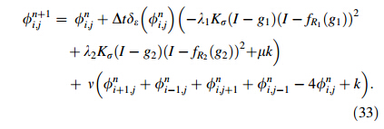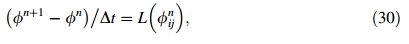 Consequently,the forward differential discrete level set function can be updated using the following form