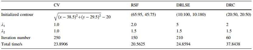 The comparisons of the measure parameters using level set evolution function are listed in Table 1.