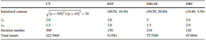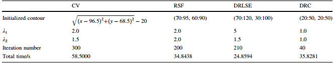 As shown in Fig. 2,the algorithm procedure of the DRC method based on level set for image segmentation is summarized by the following four steps.