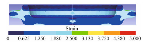 | Fig. 10Effective strain colormap of the cross section at the end of forging stage for the part forged at 950 ℃ |