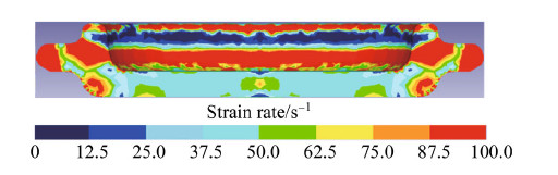 | Fig. 12Effective strain rate colormap of the cross section at the end of forging stage for the part forged at 950 ℃ |