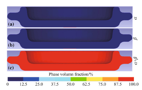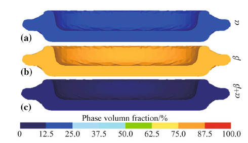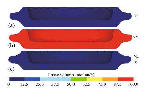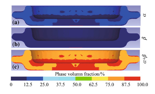| Fig. 18a α, b β and c α+β phase volume fraction colormap at the end of cooling stage for the part forged at 1 050 ℃ |