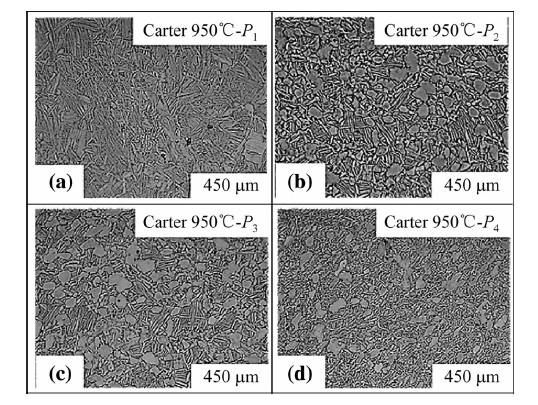 | Fig. 21Micrographic images of a P1, b P2, c P3 and d P4 points of the part forged at 950 ℃ |