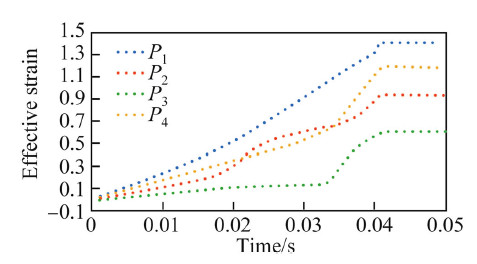 | Fig. 9Effective strain evolution for the part forged at 950 ℃ |