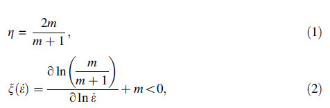 where η is the efficiency of power dissipation,ξ a dimensionless instability parameter and m the strain rate sensitivity coefficient which was considered equal to 1.3 (average value of the strain rate calculated during the process).