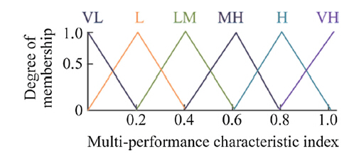 | Fig. 3 Membership functions of multi-performance characteristic index |