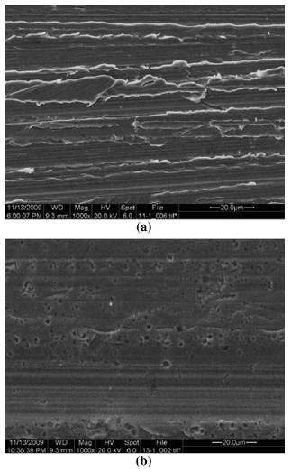 | Fig. 2 Micrograph of worn surface lubricated in a base oil,and b oil including serpentine powder [7] |