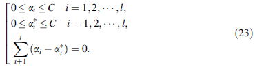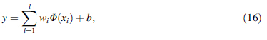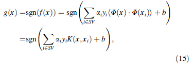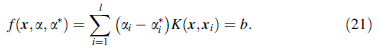 Based on the Karush-Kuhn-Tucker (KKT) conditions of quadratic programming, only a number of coefficients αi · αi* will assume nonzero values, and the data points associated with them could be referred to as support vectors. In Eq. (21), K(x, xi) is the kernel function. The value is equal to the inner product of two vectors x and xi in the feature space Φ(x) . That is, K(x, xi) = Φ(x) Φ(xi). The elegance of using kernel function lied in the fact that one can deal with feature spaces of arbitrary dimensionality without having to compute the map Φ(x) explicitly. Any function that satisfies Mercer’s condition can be used as the kernel function. 2.3 Implementation of SVM