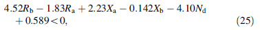 In order to find the criterion of relative stability between BaNiO3 structure and perovskite structure, the data set containing 23 samples is used for data mining [28]. By using SVC combined with atomic parameters of compounds, the mathematical model of SVC was found to differentiate between perovskite structure and the hexagonal ABX3 structures involving face-shared octahedral. The SVM model with linear kernel function manifests that 100 % of separation of the chlorides with perovskite structure and the chlorides with face-shared structures can be achieved. In this work, the leaving-one-out cross validation (LOOCV) method was undertaken to evaluate the performances of the models obtained. As such, the data set of n samples was divided into two disjoint subsets including a training data set (n-1 samples) and a test data set (only 1 sample). After developing each model based on the training set, the omitted data was predicted by the model developed. In LOOCV test, the rate of correctness of prediction is 91 %. The criterion for the formation of faceshared structure found by SVC can be expressed as follows