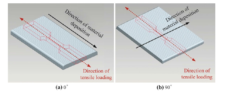 | Fig. 3 Direction 0° and 90°of deposits in relative to the tensile loading axis |