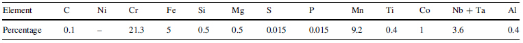 Inconel-625 is one of the nickel-chromium based alloys, which is widely used for various naval, aerospace and nuclear applications. It has outstanding fatigue and thermal- fatigue strength; good oxidation and corrosion resistance; excellent resistance to chloride stress corrosion cracking; pitting resistance at elevated temperature; and excellent brazing and welding ability [12, 13]. It derives its strength from the stiffening effect of molybdenum and niobium on its nickel-chromium matrix, thus precipitationhardening treatments are not required. Nickel and chromium provide resistance to oxidizing environment, while nickel and molybdenum to non-oxidizing environment. Pitting and crevice corrosion are prevented by molybdenum. Niobium stabilizes the alloy against sensitization during welding. Inconel-625 is an alloy with many ongoing and potential applications in engineering practice such as heat shields, furnace hardware, gas turbine engine ducting, combustion liners, spray bars, chemical plant hardware and specific seawater components [12]. Hence, Inconel-625 was chosen in the present study. The size of the powder particles used in the study was in the range from 45 μm to 106 μm. The chemical composition of Inconel-625 is presented in Table 1.