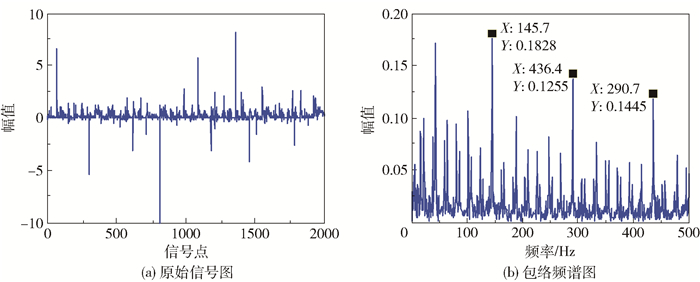 3.1 原始信号得到原始信号点及其包络频谱图如图 1所示。
