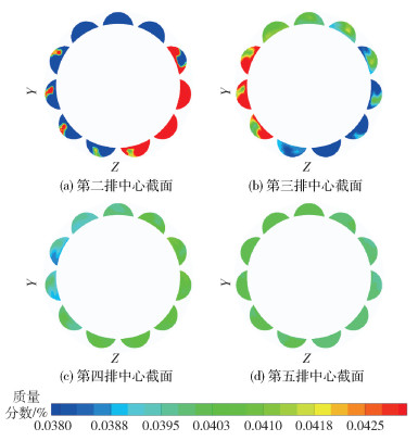 图 9 定子球窝径向截面上模拟的M2质量分数分布 Fig.9 Simulated concentration distributions of M2 of the radial balls of the stator |