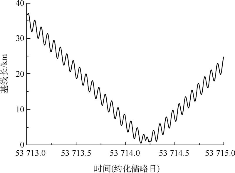 | 图 1 两颗GRACE卫星间的基线长Fig. 1 Baseline of two GRACE satellites |