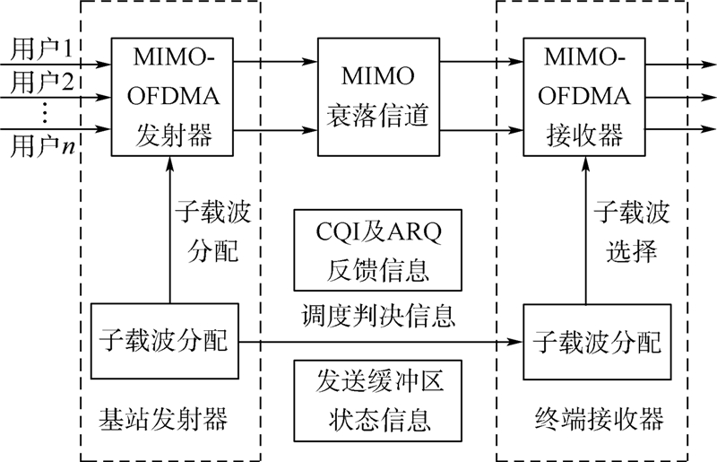 | 图 1 MIMO-OFDMA下行链路系统 Fig 1 MIMO-OFDMA downlink system |