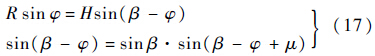 令∠BP1O=μ,根据基本的几何关系有