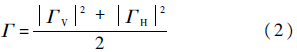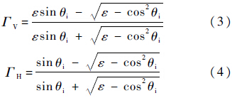 二维线性海面可由海谱快速傅里叶变换(FFT,Fast Fourier Transform)算法生成.海面的菲涅尔(Fresnel)反射系数可以表示为水平偏振反射系数和垂直偏振反射系数的简单平均[11]: