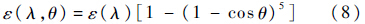 海面光谱辐射可由海面温度和黑体辐射方程计算.具有方向性的海面发射率的经验公式由Wilson给出[13]:
