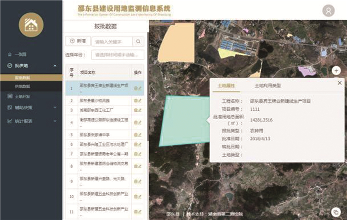 2 系统实现与应用本文设计的建设用地监测系统在邵东县国土资源局进行了实际应用,实现功能如下。