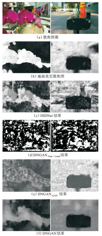 2 实验结果与分析本文通过广泛的实验从客观评价指标和图像视觉对比效果两方面论证本文提出的网络DNGAN在散焦图像去模糊和散焦图估计任务中的优势。