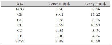 各方法用时见表 3,FCG快于GB、CB方法,比CG快约97%,且其明显快于LE、SPSS,其耗时约为LE的0.4%,SPSS的1%。