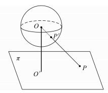在图 4、图 5与图 6中,水平面π是地面,点O是全景球的球心,点P是目标点,P′是P在全景球面上对应的像点。全景相机与地面距离H,即线段OO′的长度是已知的。全景球心O、像点P′、地物点P三点满足共线条件。