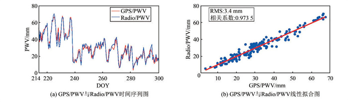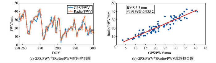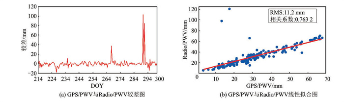 | 图 5 GPS/PWV、Radio/PWV比较图 Fig.5 Comparison of GPS/PWV and Radio/PWV |