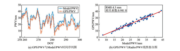 | 图 6 GPS/PWV、Model/PWV比较图 Fig.6 Comparison of GPS/PWV and Model/PWV |