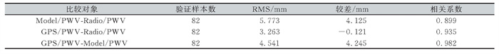 | 表 2 Model/PWV、GPS/PWV、Radio/PWV的比较 Tab.2 Comparison of Model/PWV, GPS/PWV and Radio/PWV |