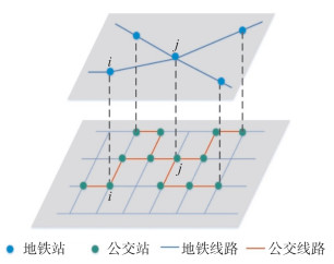 | 图 2 公交-地铁复合网络示意图 Fig.2 Diagram of the Bus-Metro Network |