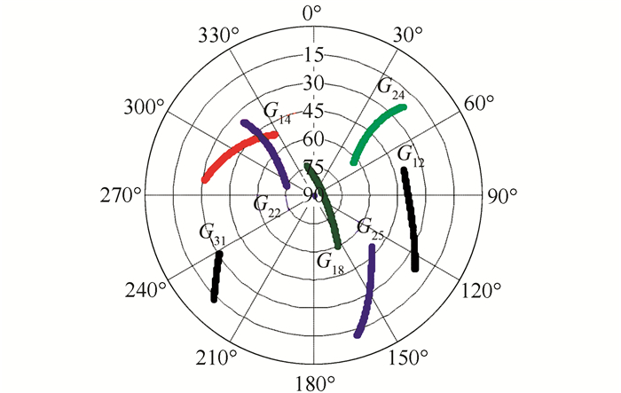 | 图 2 爆破监测时GPS卫星的分布 Fig.2 GPS Satellites in View During Blasting |