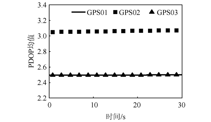 | 图 3 GPS测站30 s的PDOP Fig.3 PDOP Value of GPS Stations Within 30 s |