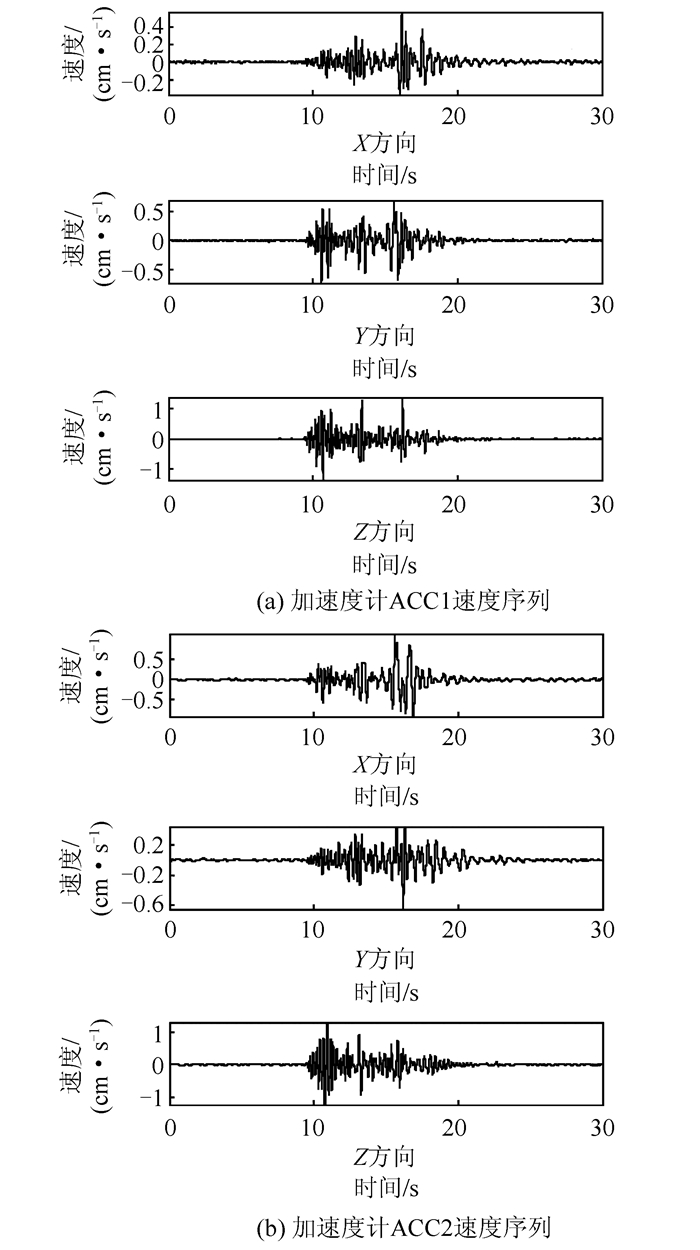 | 图 5 加速度计ACC1和ACC2速度序列 Fig.5 Velocity of ACC1 and ACC2 |