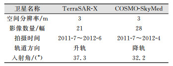 | 表 1 SAR影像参数 Tab.1 Parameters of SAR Images |