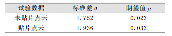 根据点云数Pi(xi, yi, zi)求得点云采样点与提取平面的距离偏差,以未贴片第一次点云为变形参考标准,进行噪声阈值计算,其结果为T=0.003 36 m。