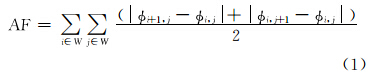 式中,φi,j为干涉相位;W配准计算窗口。当两幅图像配准时,干涉条纹最清晰,平均波动函数值最小。但是,在低相干高噪声区域或亚像素级配准时,平均波动函数值变化不够灵敏,配准误差的方差较大。