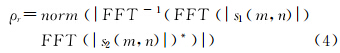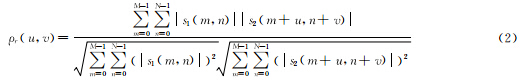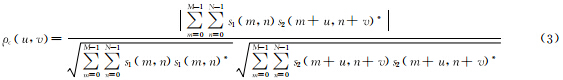 式中,s1和s2表示两幅SAR复图像;M、N表示用于相关计算的窗口大小;(u,v)表示相关计算的滑动位置;| |表示取模操作。复相关函数定义为