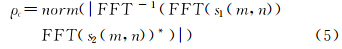 当SAR图像对精确配准时,其相关函数达到最大值。所以,只需在配准窗口内所有偏移位置上计算相应的相关函数值,等价于计算两配准窗口图像的互相关函数,互相关测度函数的峰值位置决定了配准偏移量。根据相关定理[20],两幅图像互相关函数的傅里叶变换等于一幅图像的傅里叶变换与另一幅图像的傅里叶变换的共轭相乘。因此,实、复相关函数可以通过快速傅里叶变换实现